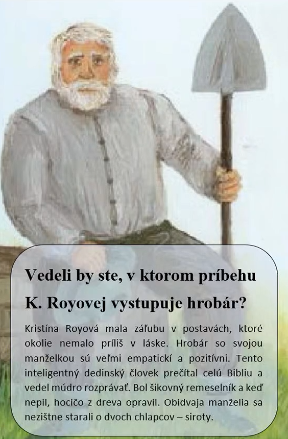Autorka tejto maľby, myslím, že dobre vystihla myslenie Kristíny Royovej. Meno novely, v ktorej je hrobár jednou z hlavných postáv, vám neprezradím, skúste ho uhádnuť sami...